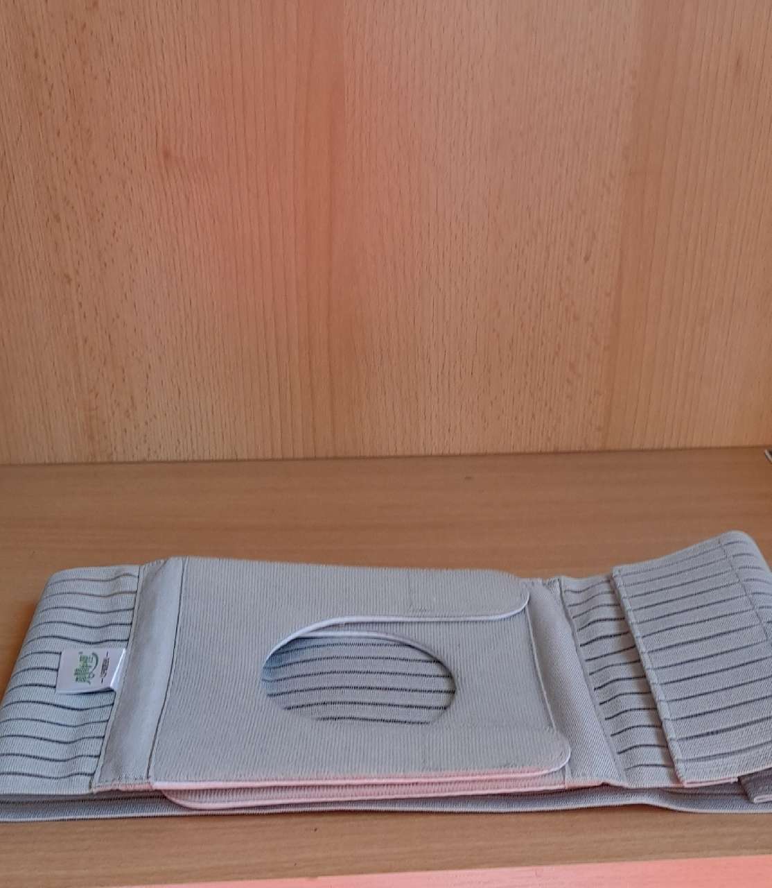 Sztóma öv sztómás betegeknek. Rugalmas anyag, a nyílás nagysága növelhető.